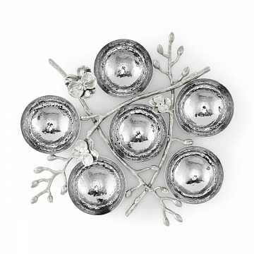 Менажница бренда Michael Aram из коллекции "White Orchid" — это дизайнерская, элитная и подарочная сервировочная посуда премиум-класса. Изделие выполнено из нержавеющей стали серебристого цвета и украшено изящной веткой орхидеи, изготовленной из латуни с серебристым покрытием. Эта красивая и элегантная менажница для закусок станет роскошным украшением стола для особых случаев.
