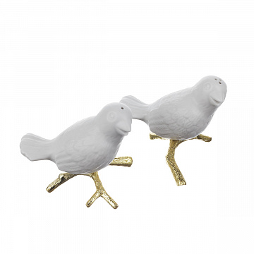 Набор для специй "Lovebirds" от знаменитого бренда Michael Aram – это больше чем просто функциональный органайзер для специй, это изысканное произведение искусства для вашей кухни. Данная модель входит в чарующую коллекцию "Flights of Fancy" и воплощает в себе романтику и нежность. В набор входят два предмета: солонка и перечница, выполненные в виде очаровательных птичек.