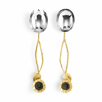 Этот набор сервировочный Michael Aram «Sunflower» наполнен теплом и солнечным светом. Набор столовых приборов из двух предметов длиной 29 см выполнен из высококачественной нержавеющей стали серебристого цвета. Главная художественная деталь — объемная ручка в виде цветка подсолнуха из золотистой латуни. Такое сочетание материалов делает этот металлический набор не просто функциональным аксессуаром, а настоящим украшением стола.