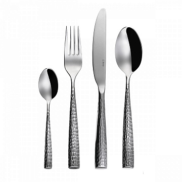 На ручке этого дизайнерского набора Miracle преобладает молоточковый узор. Идеальный выбор для тех, кто ценит современный стиль.В комплект входит:6 ложек;6x ножей;6x вилок;6 кофейных ложек.