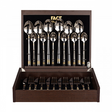 Утонченные столовые приборы Face не деформируются, не подвергаются коррозии, не изменяют вкусовые свойства, запах и цвет пищи. Они производятся в Португалии под жестким контролем качества. Металл, используемый для создания столовых приборов бренда Face, – нержавеющая сталь. В материале содержится 18 % хрома и 10 % никеля. Такое процентное соотношение химических элементов обеспечивает достаточную прочность готовых изделий. Столовые приборы Face выполнены по уникальному дизайну и оформлены в красивые подарочные упаковки. Стильные изделия можно смело использовать для сервировки праздничного стола.