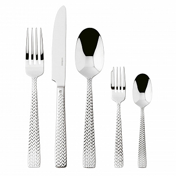 Sambonet Cortina Набор 30 столовых приборов. Декор присутствует с обеих сторон и создается в процессе формовки самих столовых приборов. Детали, не подверженные износу и времени. Предложение по украшению стола для тех, кто, вопреки моде, начинает со столовых приборов, а не с тарелки. Современная роскошь, переосмысленная с модной ноткой. Изготовлено из высококачественной нержавеющей стали 18/10 и пригодно для мытья в посудомоечной машине. Cortina напоминает большие зимние свитера и привносит в интерьер очарование и тепло, характерные для изделий ручной работы. Зеркальная полировка подчеркивает высокое качество нержавеющей стали, подчеркивая форму и дизайн. Поверхности полируются с помощью добавок и механических щеток различной зернистости и материалов, которые доводят нержавеющую сталь до зеркального блеска. Объект обогащен отражениями, которые делают его еще более ценным. Моноблочный нож изготовлен из цельного куска стали. В отличие от ножа с полой рукояткой, состоящего из двух частей, здесь нет никаких разрывов между рукояткой и лезвием, и, держа такие ножи в руке, испытываешь приятное ощущение тяжести и основательности. Модные текстуры, вдохновленные местами мечты для отдыха и международными элитными направлениями. Cortina выделяется модным рельефом, отпечатанным по всему корпусу столовых приборов, и чрезвычайно изысканным оформлением.