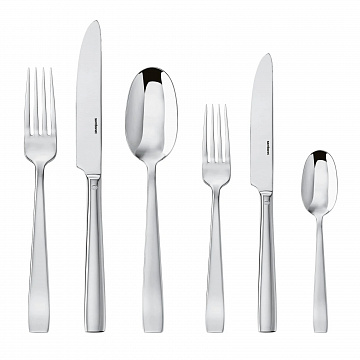 Столовые приборы в поперечном стиле, которые подойдут к любому интерьеру. Зеркальная полировка подчеркивает высокое качество нержавеющей стали, подчеркивая форму и дизайн. Поверхности полируются с помощью добавок и механических щеток различной зернистости и материалов, которые доводят нержавеющую сталь до зеркального блеска. Объект обогащен отражениями, которые делают его еще более ценным. Моноблочный нож изготовлен из цельного куска стали. В отличие от ножа с полой рукояткой, состоящего из двух частей, здесь нет никаких разрывов между рукояткой и лезвием, и, держа такие ножи в руке, испытываешь приятное ощущение тяжести и основательности. Коллекция Flat воплощает идеальное сочетание яркой индивидуальности и минималистичного стиля. Вечные столовые приборы, гарантированно качественные и традиционные, Sambonet. Состав набора: 6 столовых ложек, 6 столовых вилок, 6 столовых ножей, 6 десертных вилок, 6 десертных ножей, 6 чайных ложек.