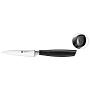 Стильный аксессуар для вашей кухни: нож для овощей из серии ZWILLING ALL*STAR изготовлен основываясь на более чем 290-летнем опыте производства ножей и современного стиля жизни. Поэтому этот кухонный нож так же красив, как и практичен. Логотип на конце рукоятке ножа обеспечивает визуальную подсветку и привлекает внимание. Черный благородный цвет ножа будет создавать яркий акцент на кухне. Закаленное лезвие FRIODUR длиной 10 см отличается особой остротой и гибкостью. Нож изготовлен из нержавеющей стали по специальной формуле ZWILLING, что делает его прочным и долговечным, поэтому вы сможете наслаждаться им долгое время. Сбалансированность обеспечивает исключительное удовольствие от процесса резки и оптимальные результаты. Эргономичная рукоятка позволяет удобно держать нож независимо от используемой техники резки. Нож для овощей позволяет чистить фрукты и овощи или нарезать мелкие ингредиенты и кусочки мяса. Его острие делает его идеальным для шпигования. Но впечатляет не только сам нож, но и его упаковка. Специально для ножей серии ZWILLING ALL*STAR мы разработали экологичную упаковку, в которой вообще не используется пластик. Применяется для резки и чистки овощей и фруктов. Нож изготовлен из высококачественной нержавеющей стали, рукоятка покрыта пластиком. Оптимизированный процесс ледяной закалки FRIODUR обеспечивает исключительную твердость лезвия.Лезвие ножа обладает прекрасными режущими свойствами, отличается особой прочностью, стойкостью к коррозии и гибкостью. Режущая кромка, заточенная под углом приблизительно 30° (15° с каждой стороны), гарантирует высокую производительность резки для удовлетворения самых взыскательных требований. Изготовлен из высококачественной нержавеющей стали, рукоятка покрыта пластиком.Применяется для резки и чистки овощей и фруктов.Мыть теплой водой с применением жидкого моющего средства, вытирать насухо.Смывать кислоты после резки овощей и фруктов сразу после использования.Использовать специальную разделочную поверхность (деревянную или пластиковую). Использовать только по назначению! Не использовать в качестве открывалки или отвертки, не ронять на пол, не класть на горячие конфорки и иные источники интенсивного тепла, не резать замороженные продукты.Хранить в недоступном для детей месте.