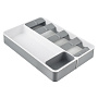 Органайзер Abdi поможет компактно разместить столовые приборы и другие кухонные принадлежности. Изделие выполнено из полистирола – безопасного в использовании материала, устойчивого к влаге, перепадам температуры и простого в уходе. Конструкция отличается лаконичным дизайном, что позволяет вписать ее в любой современный интерьер.