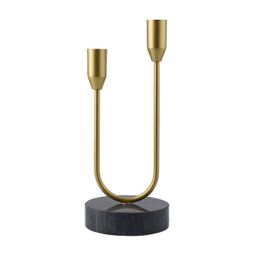Подсвечник Dobbel – прекрасный способ добавить в интерьер интересный акцент. Аксессуар имеет устойчивое основание из мрамора, от которого отходят два металлических рожка с чашами для свечей. Дизайн и цветовое решение подсвечника органично вписываются в пространства с современным и классическим оформлением. Пыль и загрязнения можно удалять при помощи мягкого, слегка влажного материала. Запрещается использование абразивов и агрессивной бытовой химии.