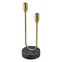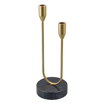 Подсвечник Dobbel – прекрасный способ добавить в интерьер интересный акцент. Аксессуар имеет устойчивое основание из мрамора, от которого отходят два металлических рожка с чашами для свечей. Дизайн и цветовое решение подсвечника органично вписываются в пространства с современным и классическим оформлением. Пыль и загрязнения можно удалять при помощи мягкого, слегка влажного материала. Запрещается использование абразивов и агрессивной бытовой химии.