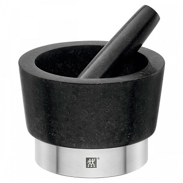 Для идеального вкуса. Именно специи придают блюдам особую изюминку. Самое важное правило: перец и другие специи раскрывают свой полный, насыщенный аромат только при свежем измельчении! Для оптимального вкуса устойчивая и нескользящая ступка для специй ZWILLING станет идеальным помощником на кухне. Она позволит вам быстро измельчить необходимые специи. А может быть, вы хотите приготовить свежий песто? С помощью прочного пестика, который удобно лежит в руке, вы можете измельчить базилик, мяту или другие свежие травы за считанные минуты. И ступка, и пестик изготовлены из гранита, высококачественного натурального камня, не оставляющего следов на вкус. Для очистки достаточно почистить их щеткой и при необходимости промыть чистой водой. Если образовались пятна или если сильно ароматные экзотические специи и свежие травы оставили свой запах, просто измельчите немного риса. Тогда ступка и пестик будут без запаха и как новые. Привлекательным элементом ступки для специй является элегантное металлическое кольцо, изготовленное из высококачественной нержавеющей стали, что является проверенным качеством ZWILLING.
