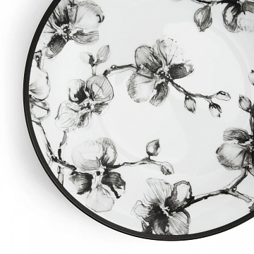 Коллекция столовой посуды Michael Aram «Чёрная орхидея» воплощает чувственное очарование и загадочность чёрной орхидеи. Каждое изделие, изготовленное из тонкого фарфора, отражает утончённую, но в то же время мощную красоту орхидеи, а тёмные, завораживающие тона создают атмосферу элегантности и интриги. Эта коллекция, вдохновлённая тайной редчайшего цветка в природе, излучает изысканность и неподвластное времени изящество. Изготовленная вручную с особым вниманием к деталям, она воплощает спокойную роскошь, которая преображает каждый приём пищи.