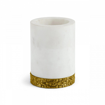 Стакан для зубных щеток Michael Aram коллекции «Palm» — это эксклюзивный дизайнерский органайзер зубных щеток, изготовленный из натурального мрамора. Элегантное изделие белого цвета с золотым декором сочетает в себе роскошь и функциональность. Данный держатель зубных щеток отличается от массовых пластиковых, керамических и металлических аналогов уникальной текстурой натурального камня.
