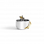 Компактная ваза для конфет Michael Aram из коллекции «Black Iris» — это эксклюзивный образец дизайнерского искусства, где ручная работа превращает утилитарный предмет в произведение скульптуры. Круглая чаша диаметром 10 см (общие габариты 14x10x6 см) выполнена из полированной нержавеющей стали серебряного цвета. Главный акцент — оригинальный декор в виде цветка ириса из позолоченной латуни, который контрастирует с холодным блеском металла, делая эту маленькую вазу невероятно изящной и красивой.