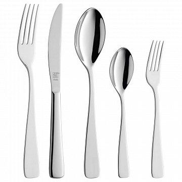 Впечатляющее качество и современный дизайн этого набора ZWILLING SOHO из 30 предметов делают его идеальным для семейного обеда. В набор входят обеденные вилки, обеденные ножи, столовые ложки, кофейные ложки и вилки для десерта. Придайте стильный вид Вашему столу с этим практичным набором столовых приборов от ZWILLING. Изготовлен из высококачественной нержавеющей стали 18/10. Не подвержен коррозии. Можно мыть в посудомоечной машине. В комплекте: 6 столовых ножей, 6 столовых вилок, 6 столовых ложек, 6 кофейных ложек, 6 вилок для торта. Использовать только по назначению! Мыть сразу после использования, можно мыть в посудомоечной машине, но рекомендуется мыть вручную во избежание появления царапин на поверхности приборов. Хранить в недоступном для детей месте.