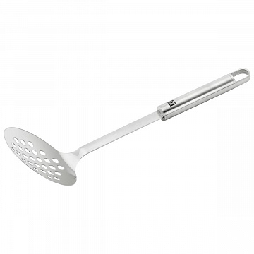 Шумовка - идеальное кухонное приспособление для сбора лишнего жира или накипи. Она также идеально подходит для добавления и извлечения ингредиентов, например, шпецле, овощей или других продуктов, в кипящую воду или фритюр, без разбрызгивания. Шумовка серии ZWILLING Pro с точечными отверстиями изготовлена из высококачественной нержавеющей стали. Элегантный дизайн разработан известной студией Маттео Туна и Антонио Родригеса, а это значит, что он всегда остается современным и даже спустя годы по-прежнему хорошо смотрится на любой кухне. В конструкции ручки большое внимание уделяется не только внешнему виду, но и эргономичности и функциональности. Шумовка очень удобна в обращении, а большое отверстие в ручке позволяет подвешивать ее на любые крючки. Углубленная форма шумовки позволяет легко извлекать продукты даже со дна кастрюли, а благодаря небольшому размеру отверстий Вы сможете сцедить даже мелкие ингредиенты. После использования просто поместите шумовку в посудомоечную машину, а затем подвесьте на кухонную рейку как элемент интерьера.