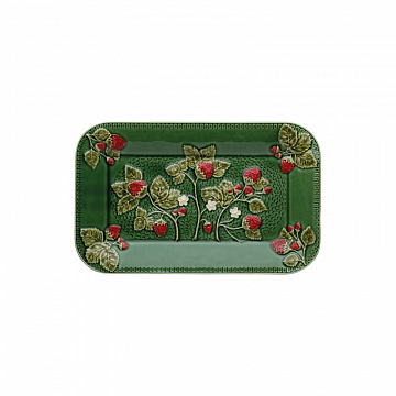 Блюдо прямоугольное Bordallo Pinheiro "Клубника", 34x21 см, зеленое