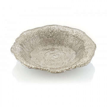 Все предметы из прессованного стекла с песочно-хромовым декором в коллекции Diamanté характеризуются дизайном, который воспроизводит снаружи рисунок, создающий неровную поверхность, которая особенно блестит и очень приятна на ощупь. Они прекрасно подходят как для повседневного стола, так и для более элегантных.