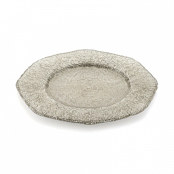 Все предметы из прессованного стекла с песочно-хромовым декором в коллекции Diamanté характеризуются дизайном, который воспроизводит снаружи рисунок, создающий неровную поверхность, которая особенно блестит и очень приятна на ощупь. Они прекрасно подходят как для повседневного стола, так и для более элегантных.