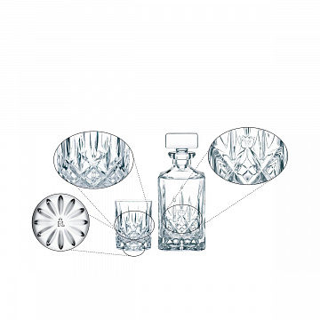 Набор состоит из двух стаканов и подходящего к ним графина для с завораживающим дизайном. Этот уникальный и привлекательный набор станет идеальным подарком. Изделие изготовлено из прозрачного хрустального стекла. Серия Noblesse привнесет в ваш дом нотку роскоши и вдохновит возрождением классического дизайна. Эти изделия, вырезанные из тончайшего хрусталя, просто необходимы каждому, кто хочет придать своему дому новый блеск. Этот продукт изготовлен машинным способом. В связи с особенностями производственного процесса возможны небольшие допуски размеров.