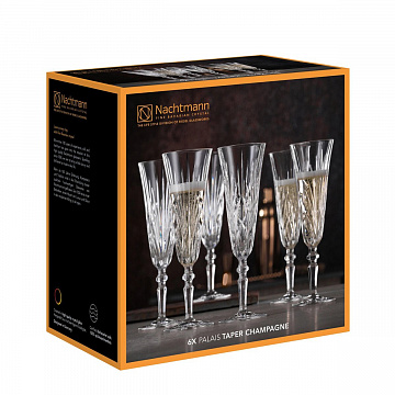 Набор бокалов из коллекции Palais выполнен из прозрачного хрусталя. Изделия из коллекции Palais словно покрыты причудливым морозным узором, который подчеркивает их прозрачность и блеск. Бокалы и фужеры Nachtmann, изготовленные из прозрачного и цветного хрусталя, невероятно элегантны. Они поражают своим блеском и изысканной гравировкой. Несмотря на широкое применение современных технологий, некоторые этапы производства бокалов Nachtmann осуществляются вручную. Это позволяет достигнуть высочайшего качества исполнения каждого предмета. Изобретенная мастерами компании техника резки граней позволяет добиться особой игры света, который, отражаясь и преломляясь, окутывает бокалы настоящим сиянием.