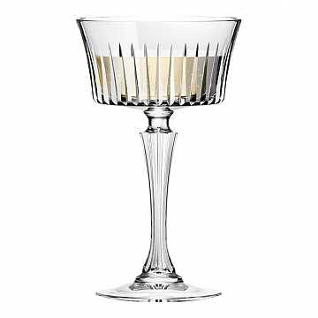 Коллекция Timeless от RCR украшена стильным граненым декором по всему периметру, который простирается и по всей поверхности изогнутой ножки. Ножка и кубок соединены немного более узкой средней частью, что позволяет удобно зажать ножку между пальцами, удерживая структурированный кубок в ладони. Хотя основа стакана сохранена более простой, она создает интересное, многоярусное визуальное впечатление.