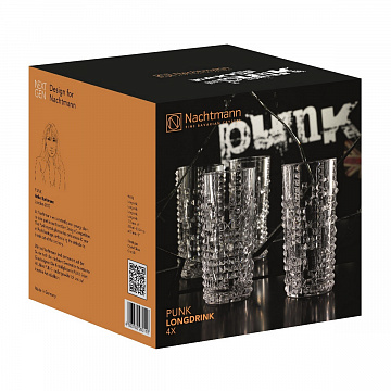 Серия Punk была разработана в 2017 году в рамках проекта Nachtmann NextGen. Панк-дизайнер Анке Бухманн приехала из Central Saint Martins в Лондоне. В этой серии используются дословные переводы ключевых визуальных элементов панка, таких как заклепки и шипы, для разработки тактильной линейки посуды для бара. Отрываясь от классических правил дизайна, PUNK выделяется из толпы. Его характерный и привлекающий внимание характер вырывается из традиций, чтобы добавить эффектности каждому столу.