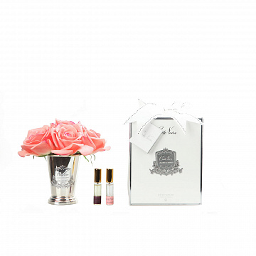 Черпая вдохновение из жизни провинциальной деревни, мы создали серию насыщенных ароматов, сочетающих в себе любимые кондитерские изделия с сочными фруктовыми и цветочными нотами. Ароматы коллекции Cote Noire черпают вдохновение из идиллической сельской местности Шаранты, и каждый аромат стремится передать портрет традиционной французской жизни. Ароматы включают в себя любимые кондитерские изделия, ароматный чай, сочные фрукты и соблазнительные цветочные ноты. Цветы были искусно изготовлены вручную, и на них нанесено специальное натуральное покрытие, придающее каждому лепестку живой вид и ощущение прикосновения. Лепестки наделены тонким ароматом. Композиция из семи роз помещена в кубок с тонким ароматом и красиво упакована в коробку Cote Noire с лентой. Розовый пион: этот роскошный аромат смешан с жасмином, верхними нотами розы и левкой, создавая округлый аромат, почти воссоздающий прелесть свежего букета пионов. Rose Oud: Молодой и ароматный розовый уд, согретый полуденным солнцем. Богатый и невинный аромат, дополненный стойкими нотами гибискуса.